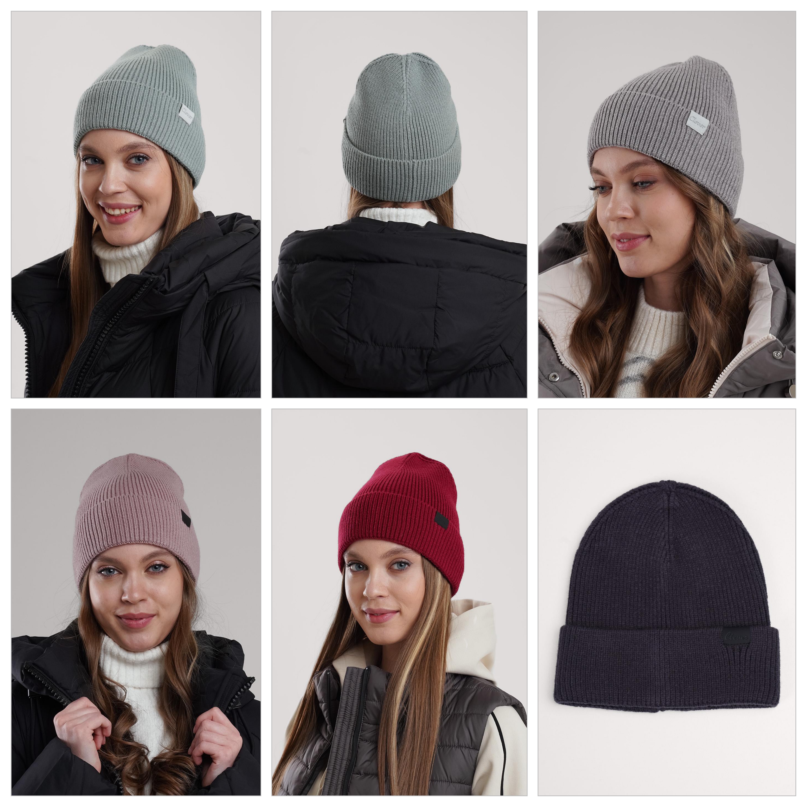 Описание: Шапка женская однослойная с отворотом, без подклада. Декорирована стильной нашивкой. Станет не только отличной защитой от холода, но и модным аксессуаром.