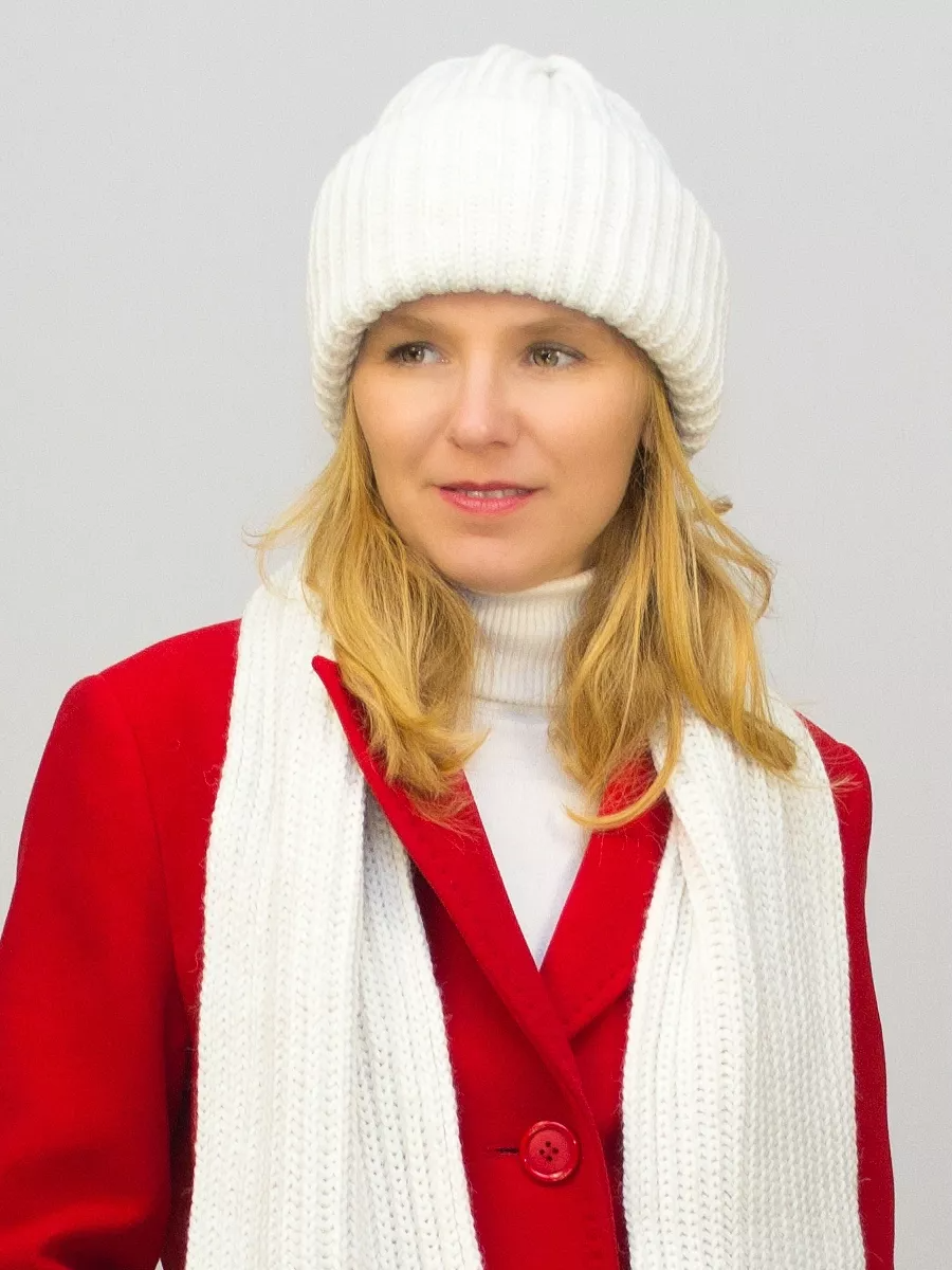 Комплект женский весна-осень шапка+шарф Анна (Цвет молочный), размер 56-58, шерсть 30%