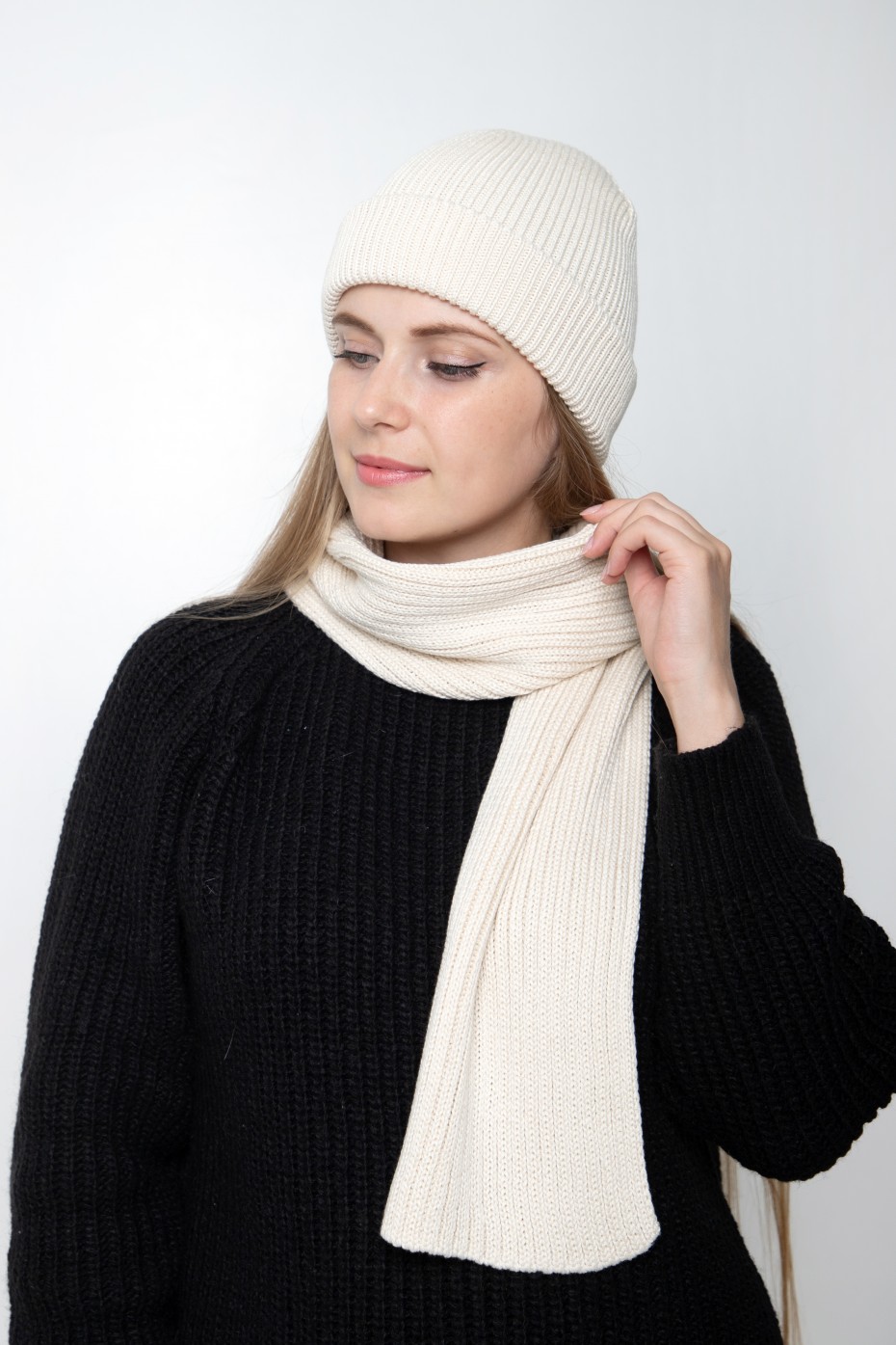 Комплект (шапка 54-58 см , шарф) однослойная с подворотом