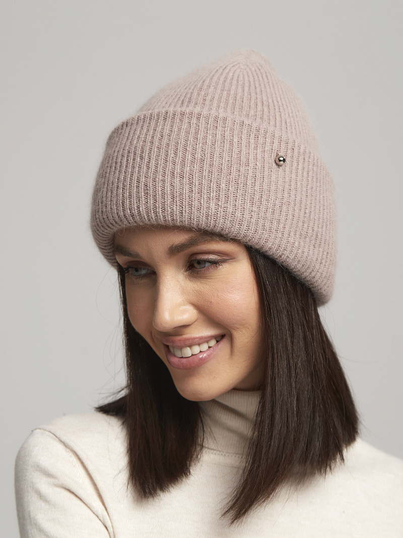 Шапка премиум-класса двойная с ангорой. Классический строгий дизайн, лаконичный металлический декор - подвеска.