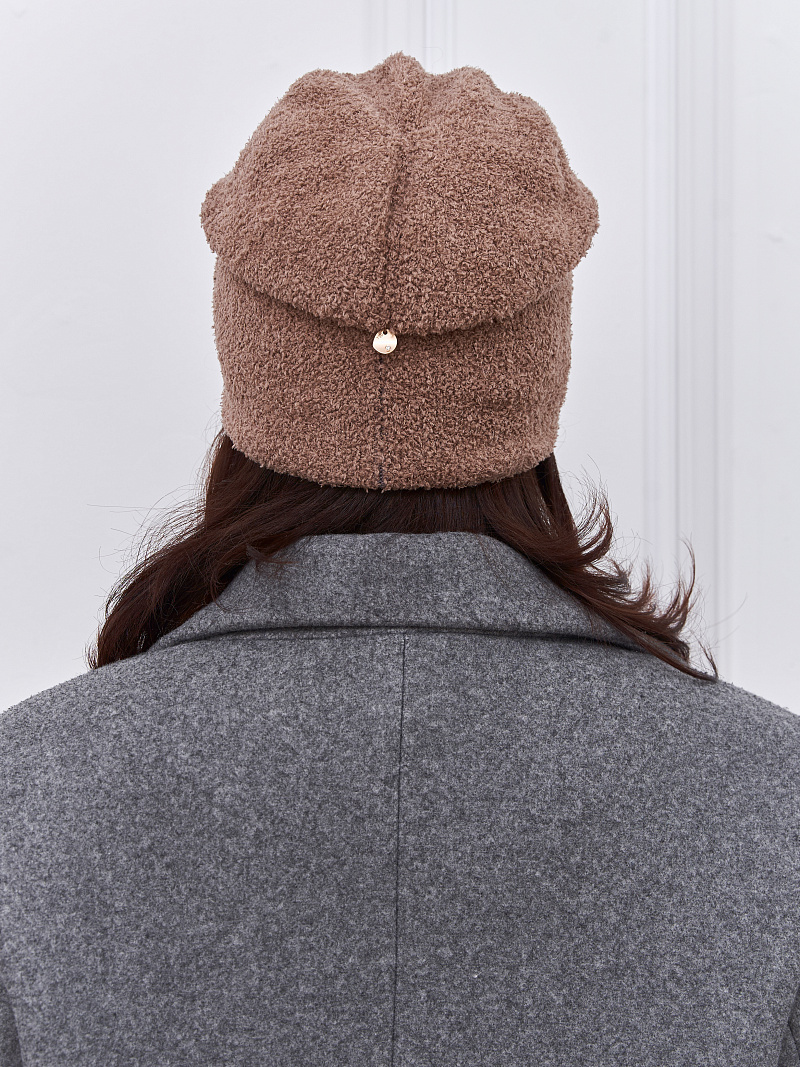 Шапка двойная с шерстью мериноса, сзади с защипом. Плюш