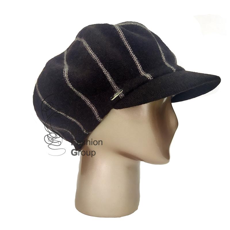 Женская кепка с контрастными полосками  из 100% шерсти. Сбоку украшена фирменной металлической шильдой.