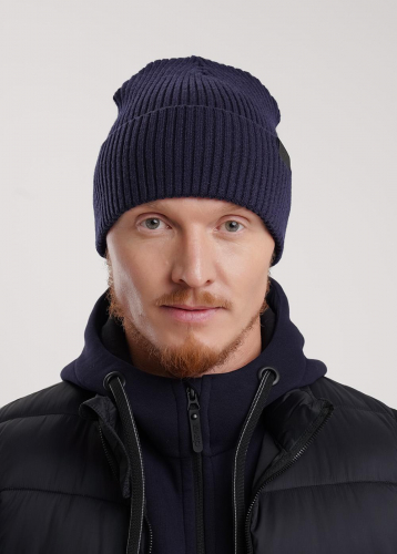 Шапка однослойная с отворотом. Декорирована стильной нашивкой. Станет не только отличной защитой от холода, но и модным аксессуаром.