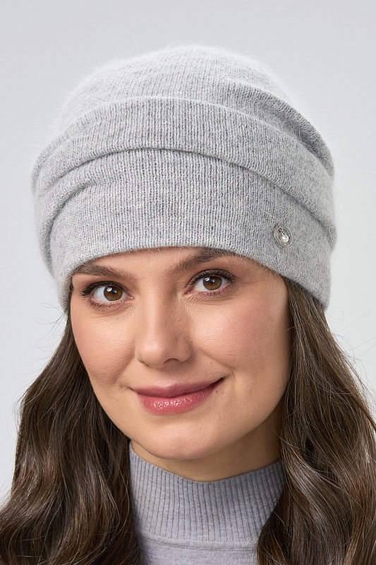 Шапка двойная. Модель с продольными складками и защипом на затылке, выполнена из мягкой пряжи "Angora". Вязка плотная, эластичная.