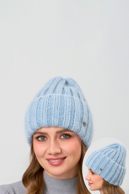 Шапка одинарная с широким отворотом 12 см. Выполнена из пряжи "Angora" с добавлением люрекса.
