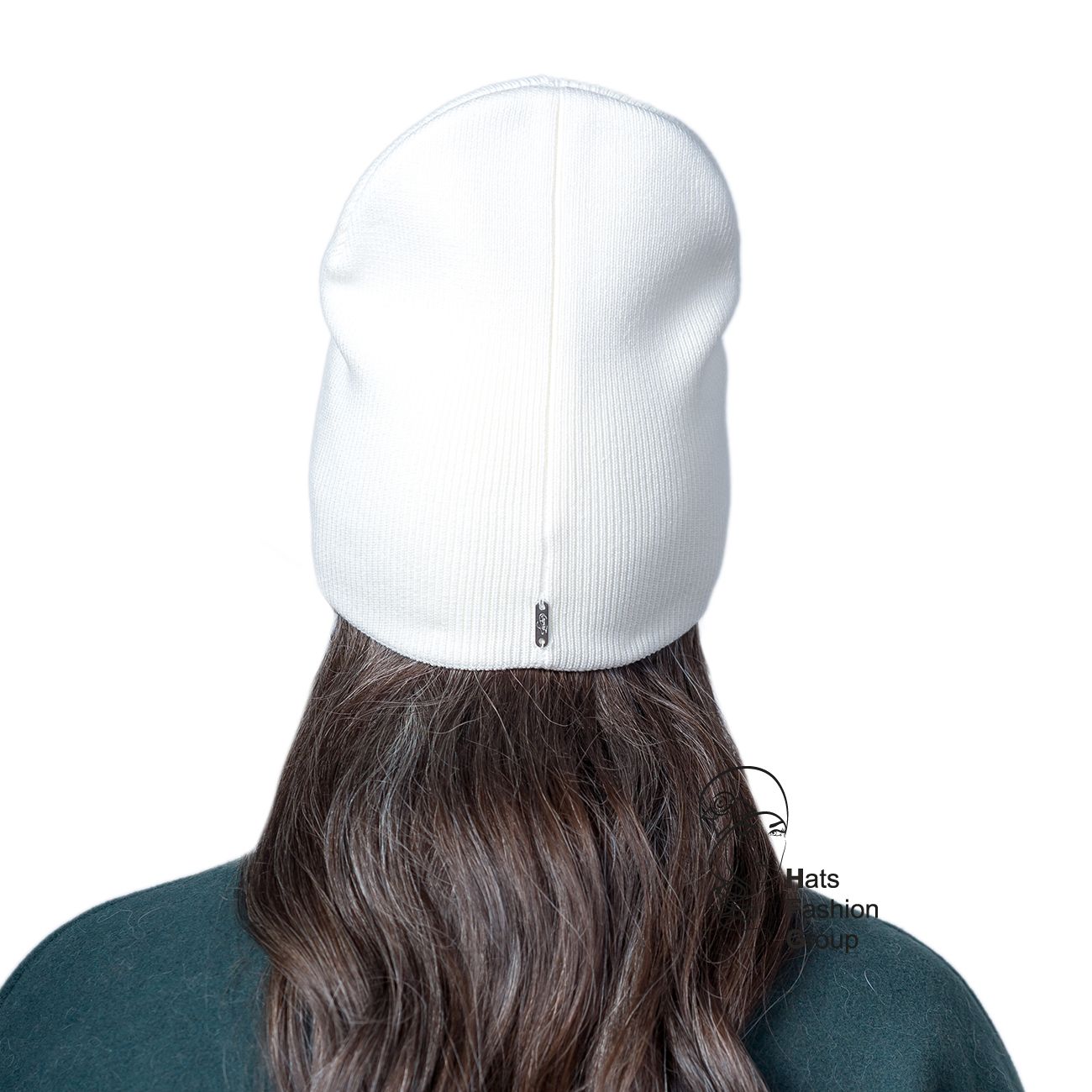 Молодежная модная двойная шапка-бини,  выполнена из вискозной пряжи с добавлением шёлка. Шапка мягкая, приятная на ощупь. Длина изделия с отворотом 24 см. Украшена сзади фирменной металлической шильдой. Универсальная шапка для любого возраста. Идеально подходит на начало осени, весну, а также для тех, кто не носит шерсть и ангору.