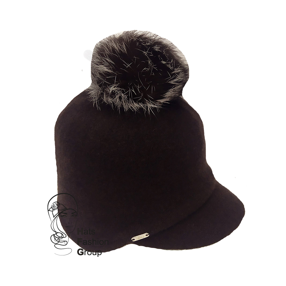 Молодежная двойная стильная кепка с "ушками" из 100% шерсти мериноса. Украшена съемным помпоном из натурального меха. Сбоку украшена фирменной шильдой.