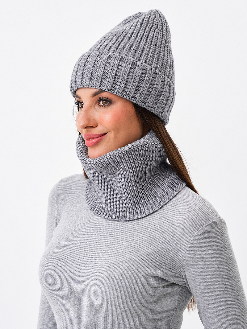 Комплект на флисе с кашемиром кожаный декор. Шапка + снуд: дл.31см. шир.22см.
