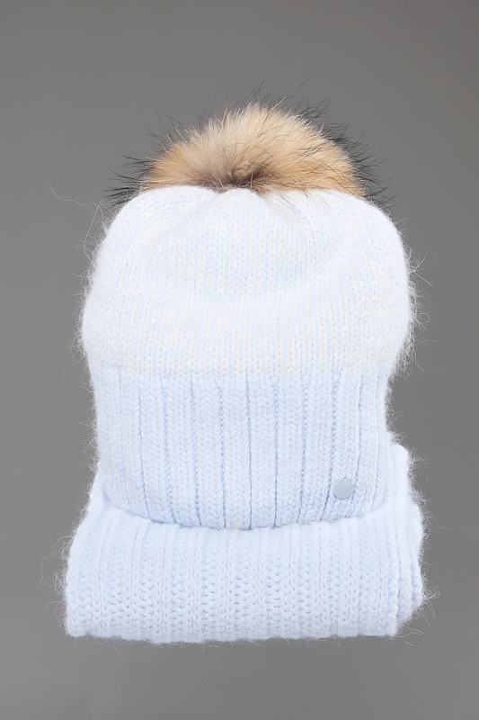 Шапка двойная с рельефной манжетой и натуральным помпоном (помпон съемный на кнопке). Размер 56-58. + Шарф однослойный. Размер: 20 х 180 см.