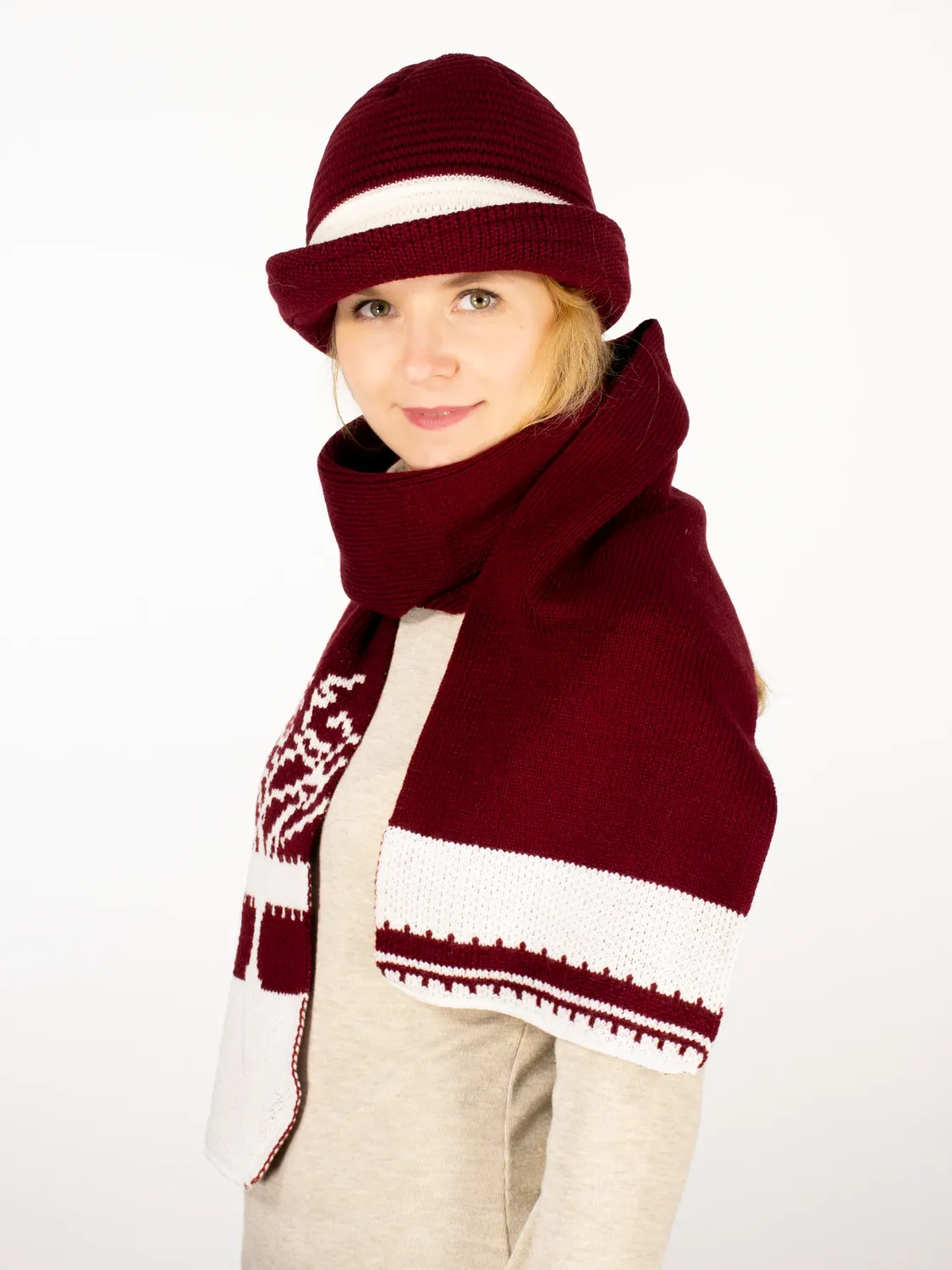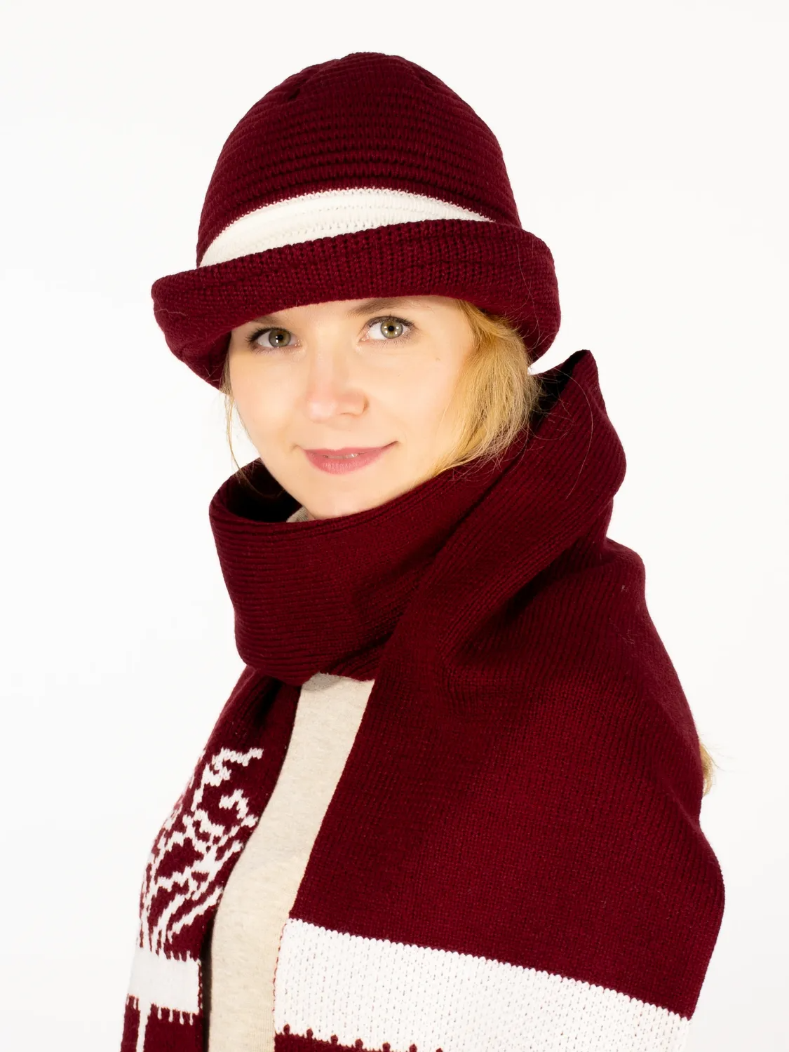 Комплект шляпа+шарф женский весна-осень Wood (Цвет бордовый).
