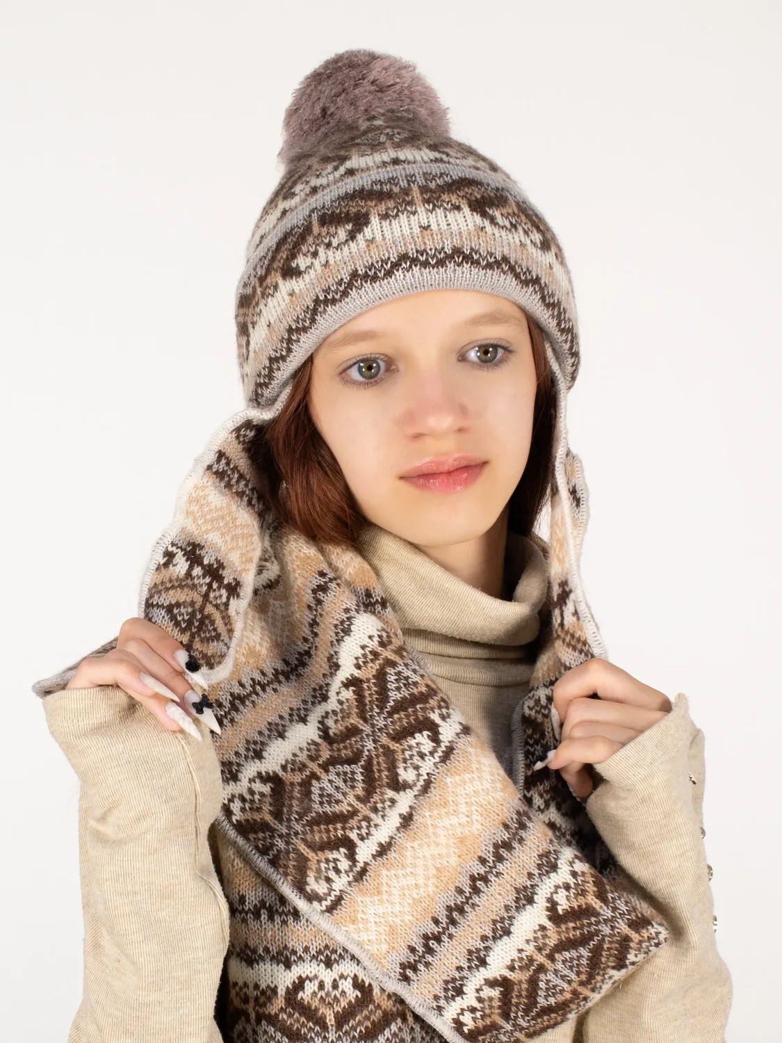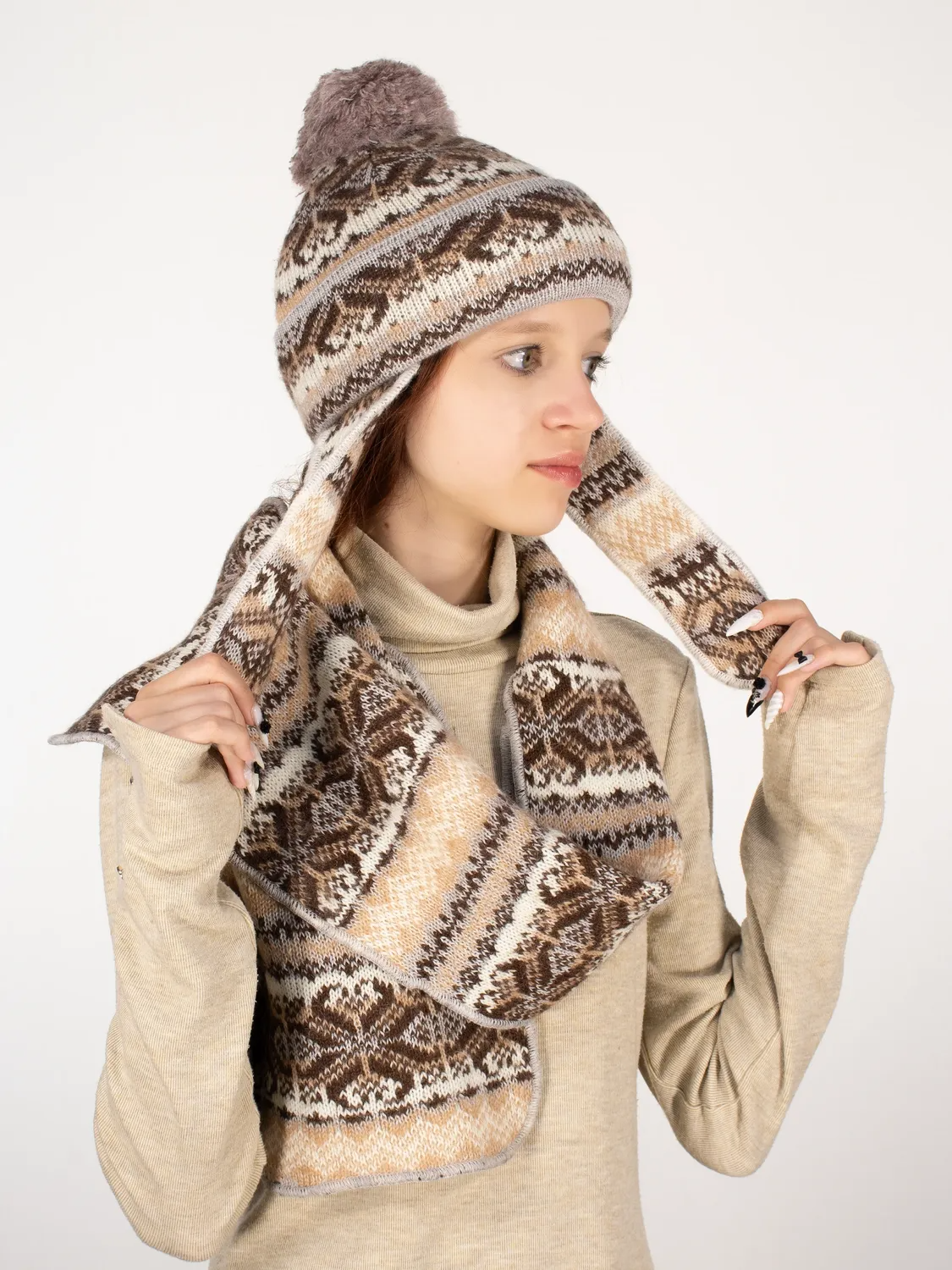 Комплект зимний для девочки шапка+шарф Сибирия (Цвет коричневый).