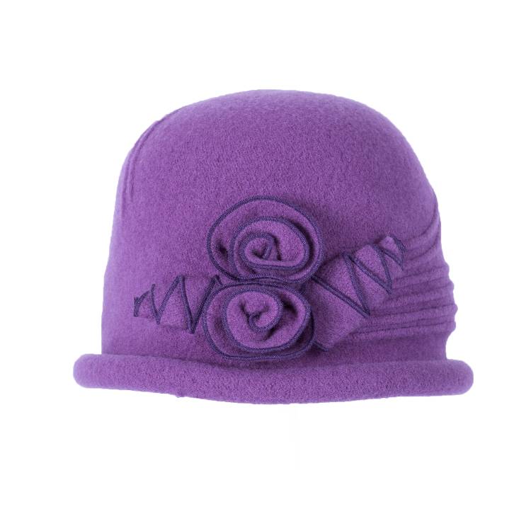 Элегантная женская шляпка по голове с полями «рулик» и декоративными отстрочками, придающими объем. Сбоку украшена нарядной композицией из основного полотна.