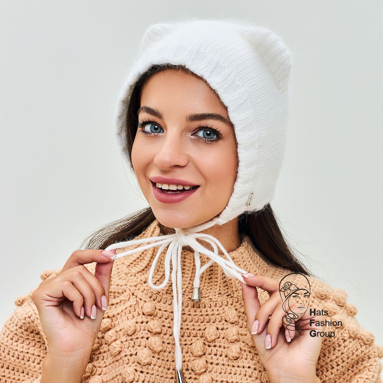 Уютный теплый женский чепчик с ушками и с декоративным разрезом сзади. Чепчик на флисовом подкладе, который делает изделие очень приятным и комфортным в носке. Чепец  свободный, не сдавливает голову. Чепец связан из высококачественной мягкой ангоры с добавление шерсти. Женский чепчик с ушками - отличный выбор для тех, кто хочет быть в центре внимания и выглядеть стильно и элегантно. Чепчик с ушками поможет создать яркий запоминающийся образ!