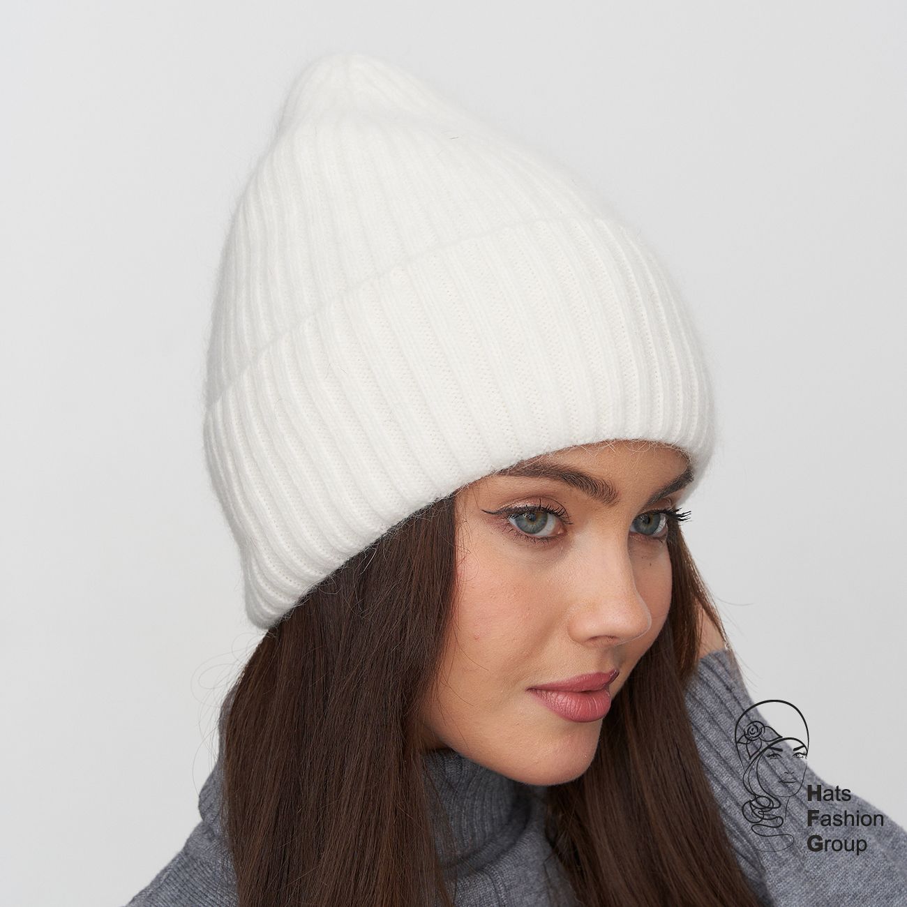 Стильная объемная шапка с отворотом. Шапка имеет флисовый подклад. Вязка резинкой 2х2 придает дополнительный объем издели. Шапка выполнена из полушерстяной пряжи.  Вязаная модель шапки не колется, тянется и не сдавливает голову. Длина изделия с отворотом 23,5 см, отворот - 9 см. Шапка станет отличным дополнением к вашему гардеробу, подойдет для сочетаний с пальто, куртками, пуховиками, шубами. Универсальная шапка для любого возраста.