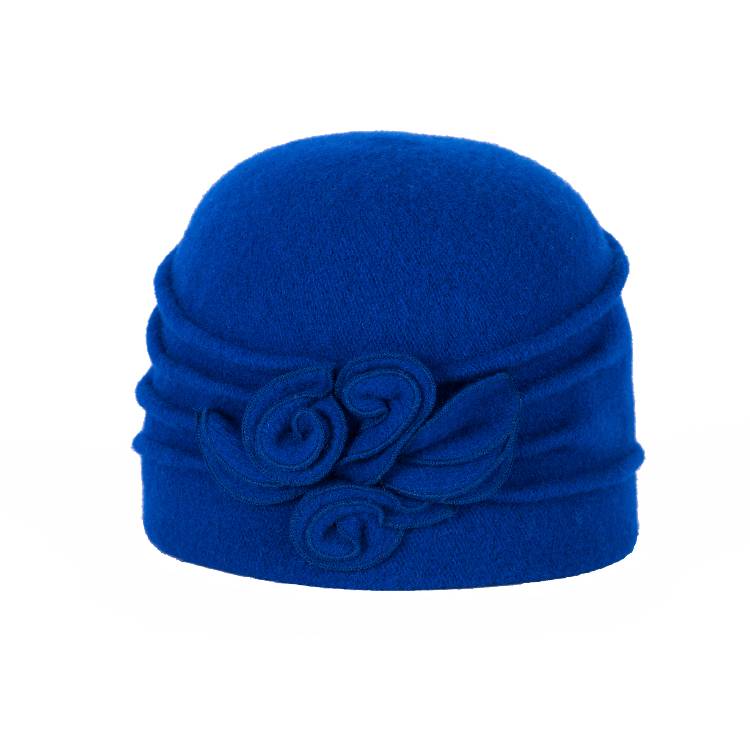 Женская шерстяная  шапка по голове. Сбоку украшена оригинальной  композицией в виде двухслойных лепестков. Форму и объем шапке придают ассиметричные декоративные складки по окружности.