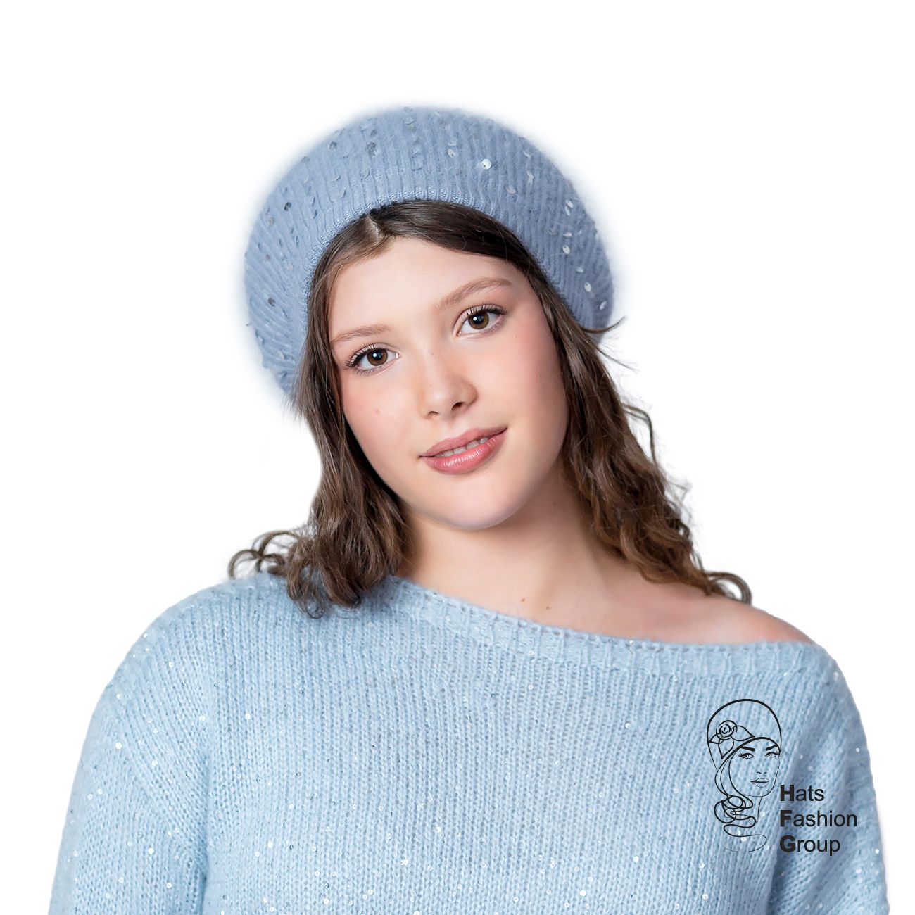 Пушистый женский берет. Теплый двойной берет выполнен из высококачественной мягкой ангоры, украшен крупными пайетками. Диаметр берета 27 см. Женский берет с пайетками - отличный выбор для тех, кто хочет быть в центре внимания и выглядеть стильно и элегантно. Берет с крупными пайетками поможет создать яркий запоминающийся образ!