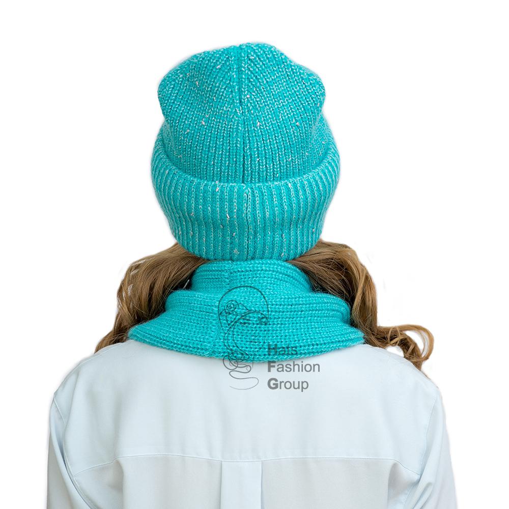 Молодежный комплект шапка + снуд. Шапка бини с отворотом и подкладкой из флиса. В пряжу шапки добавлен люрекс, который актуален в модных тенденциях последних сезонов. Снуд размер 26*28 см.