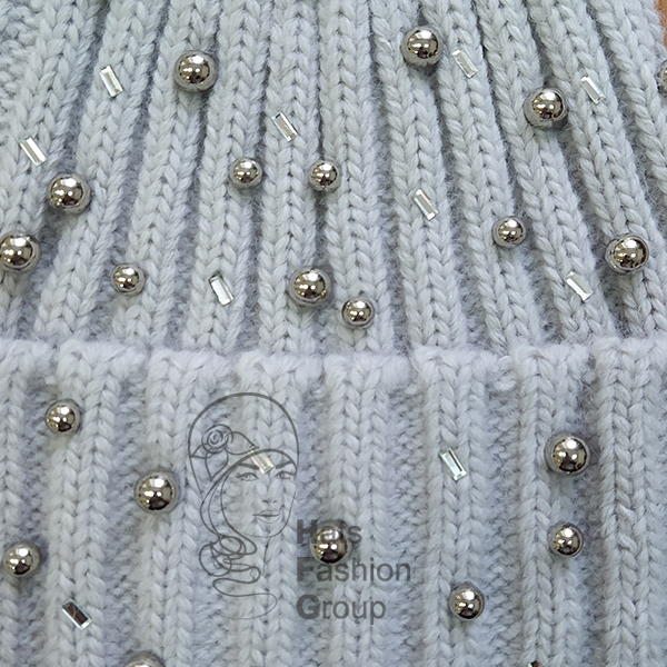Молодежная  шапка с отворотом, утеплена флисовой подкладкой. Флисовая подкладка делает изделие комфортным в носке. Украшена бусинами и крупными прямоугольными стразами.