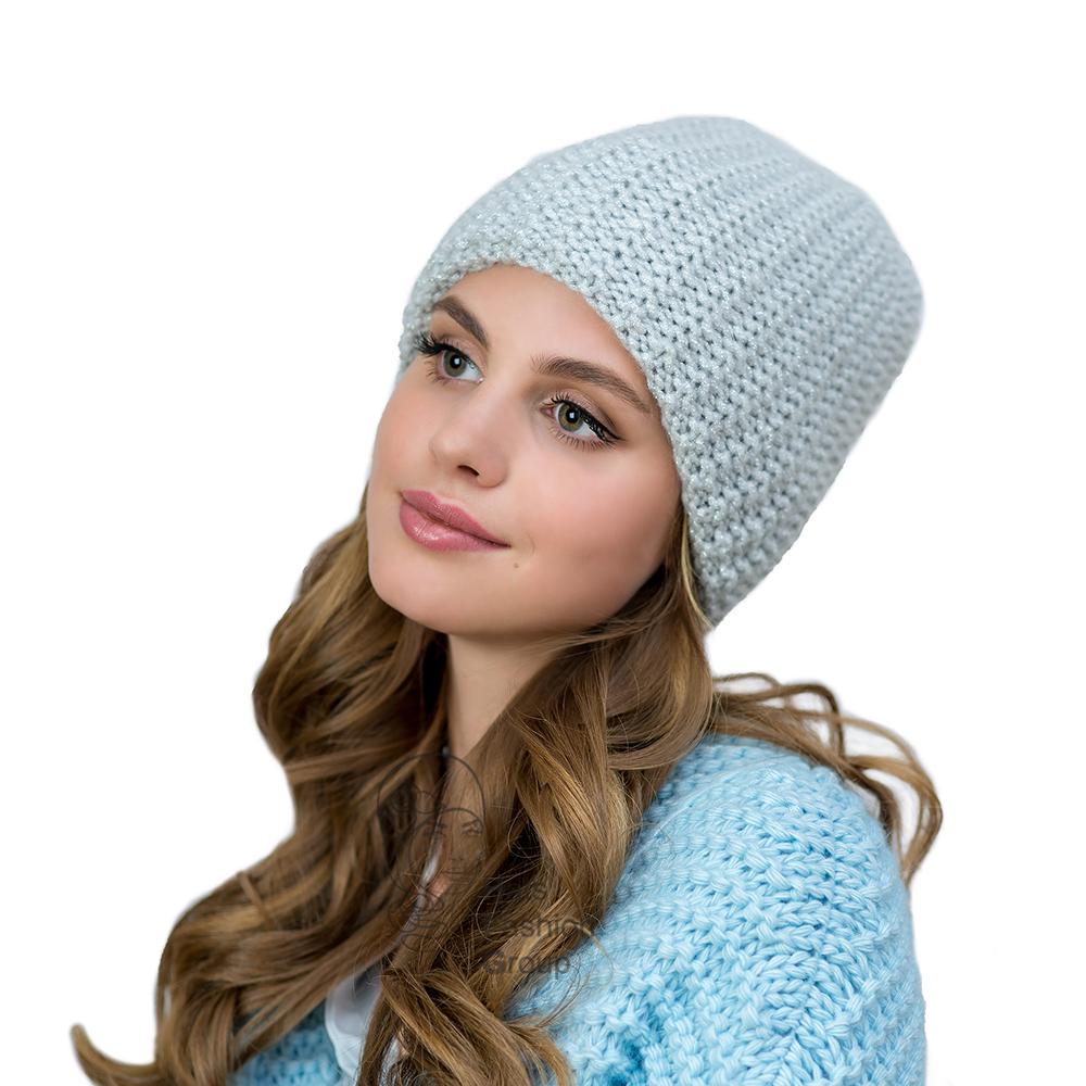 Женская двойная шапка. В пряжу добавлен люрекс.
