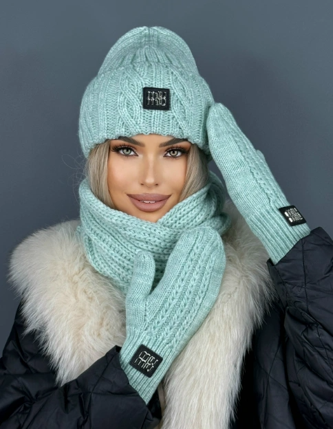 Комплект тройка: шапка на флисе, хомут, варежки
