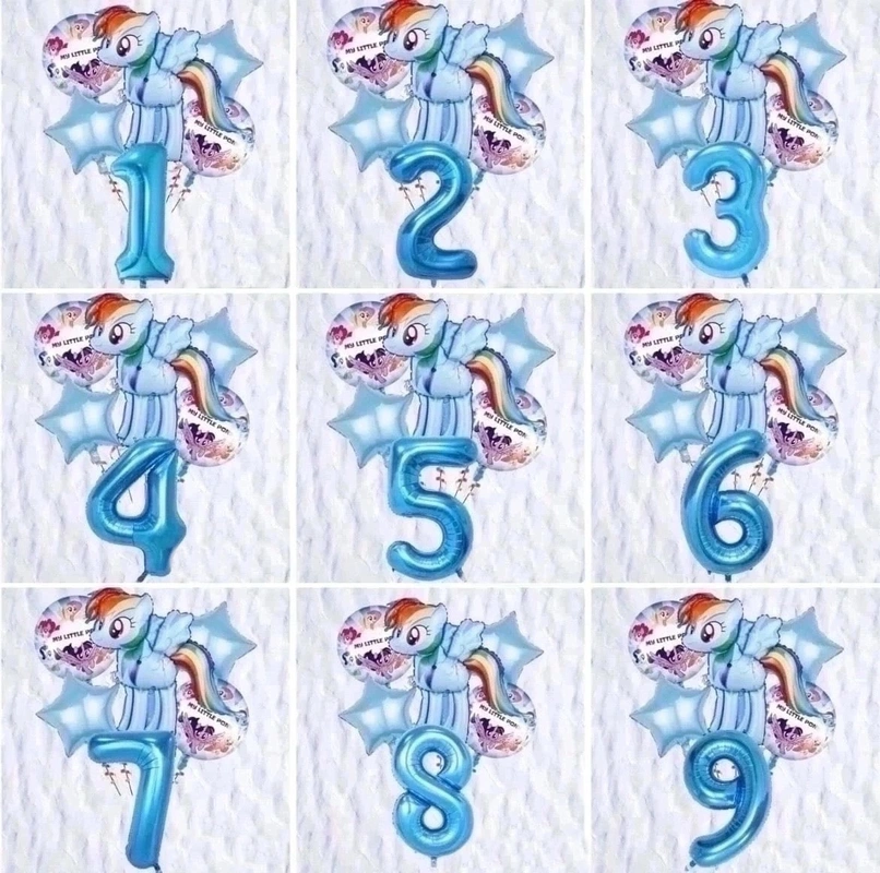 Пони Букет состоит из 5 фольгированных шаров и 1 цифры: