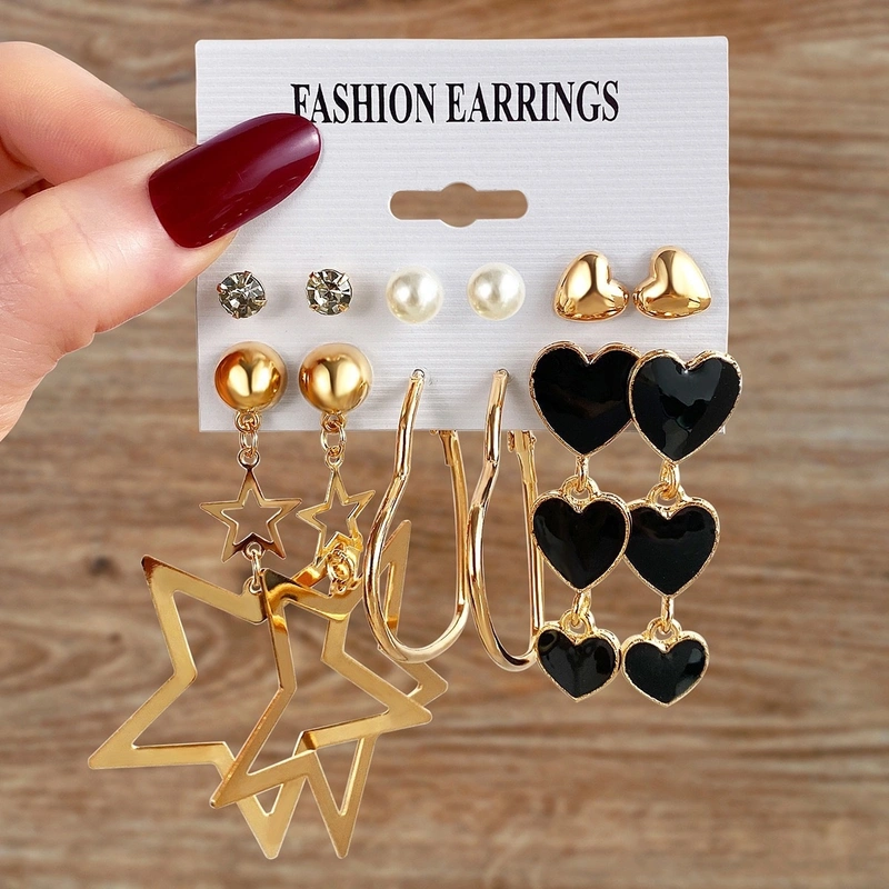 В комплект входят 6 пар декоративных сережек разнообразных форм - от массивных до минималистических.