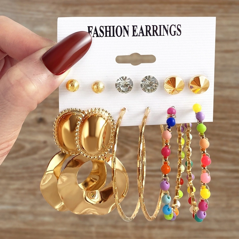 В комплект входят 6 пар декоративных сережек разнообразных форм - от массивных до минималистических.