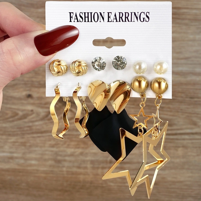 В комплект входят 6 пар декоративных сережек разнообразных форм - от массивных до минималистических.