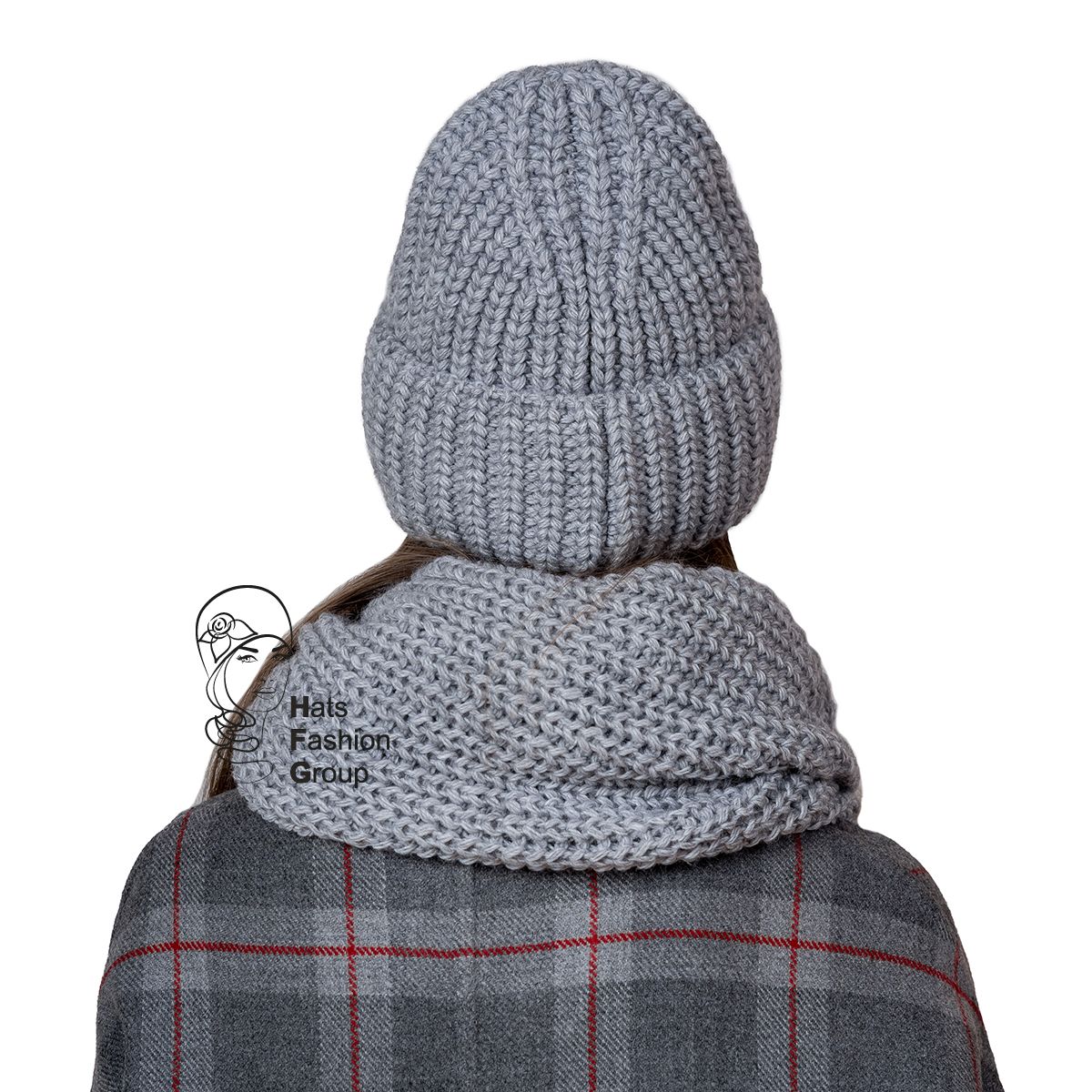 Теплый женский комплект: шапка+снуд. Шапка объемная базовая с отворотом, утеплена флисом. Флисовая подкладка делает изделие комфортным в носке. Высота шапки - 25 см. Снуд-восьмерка, размер 120х30 см. Зимний комплект, отлично подойдет для холодов.