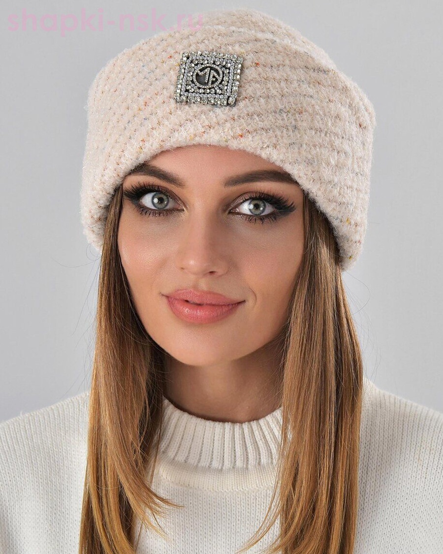 Отворот мохер мульти квадрат стразы Шапка флис (56-58)