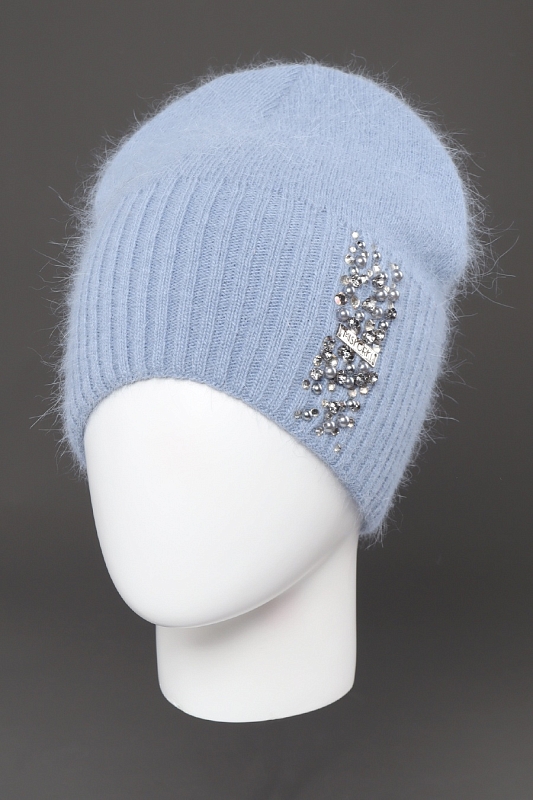 Шапка женская двойная. Вязка в сочетании мягкой ангоры и шерсти.