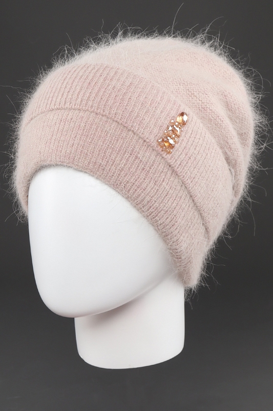Шапка женская на флисовом подкладе, сзади оформлена драпировка и закреплена строчкой. Вязка в сочетании мягкой ангоры и шерсти.
