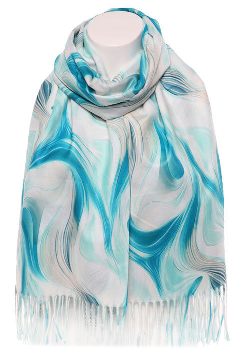 Мягкий, плотный палантин. Края палантина заканчиваются кромкой, концы - бахрома.