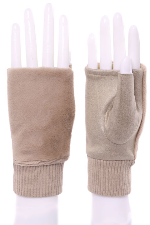 Митенки женские, комбинированная ладонь - иск.замша на велюровой основе, верх - мягкий эко-мех на велюровой основе.