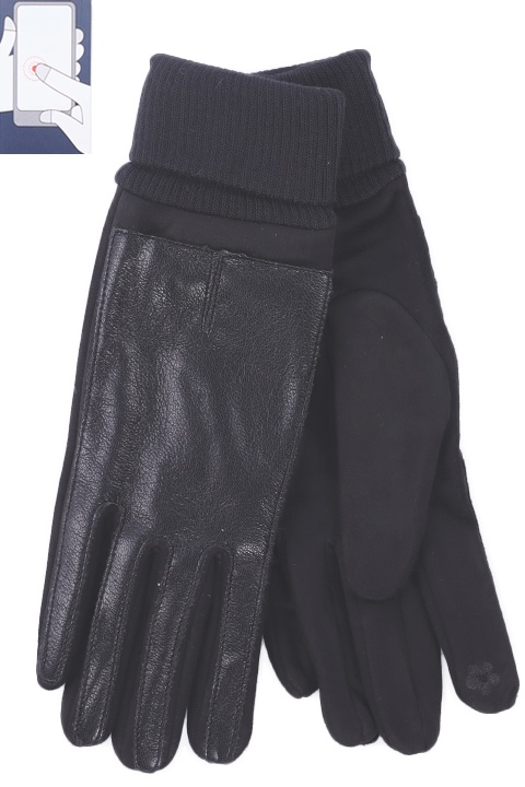 Перчатки женские сенсорные (нашивка на кончике указательного пальца). Комбинированные: ладонь иск.замша на основе велюра, сверху - эко-кожа.