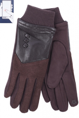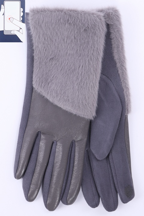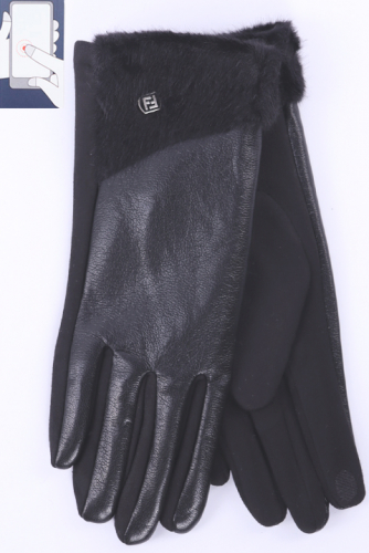 Перчатки женские сенсорные (нашивка на кончике указательного пальца). Комбинированные: ладонь иск.замша на велюровой основе. Сверху - иск.мех на подкладе велюр и вставка из эко-кожи.