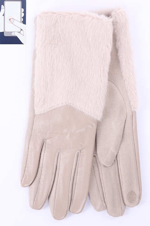 Перчатки женские сенсорные (нашивка на кончике указательного пальца). Комбинированные: ладонь иск.замша на велюровой основе. Сверху - иск.мех на подкладе велюр и вставка из эко-кожи.