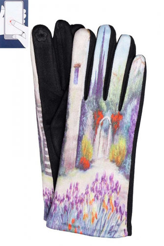Перчатки женские сенсорные (нашивка на кончике указательного пальца). Комбинированные: верх - трикотажное сукно, ладонь - иск.замша на велюровой основе.