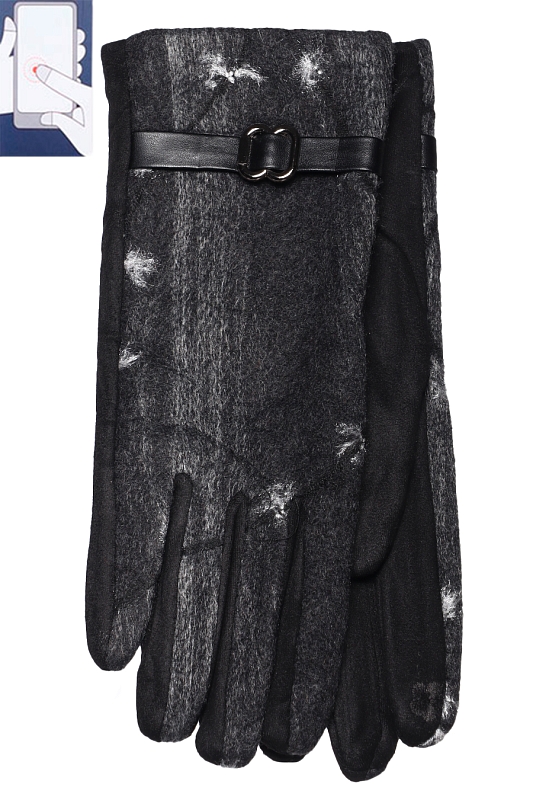 Перчатки женские сенсорные (нашивка на кончике указательного пальца). Комбинированные: верх - трикотажное сукно, ладонь - иск.замша на велюровой основе.