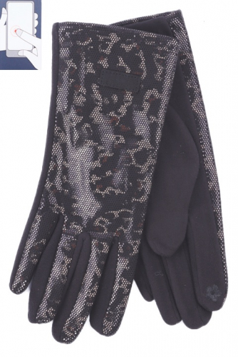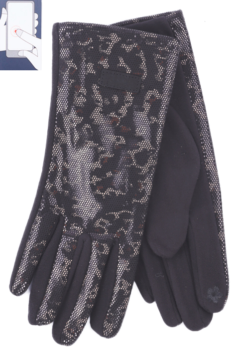 Перчатки женские сенсорные (нашивка на кончике указательного пальца), ладонь - иск.замша, верх - трикотаж под кожу на велюровой основе.