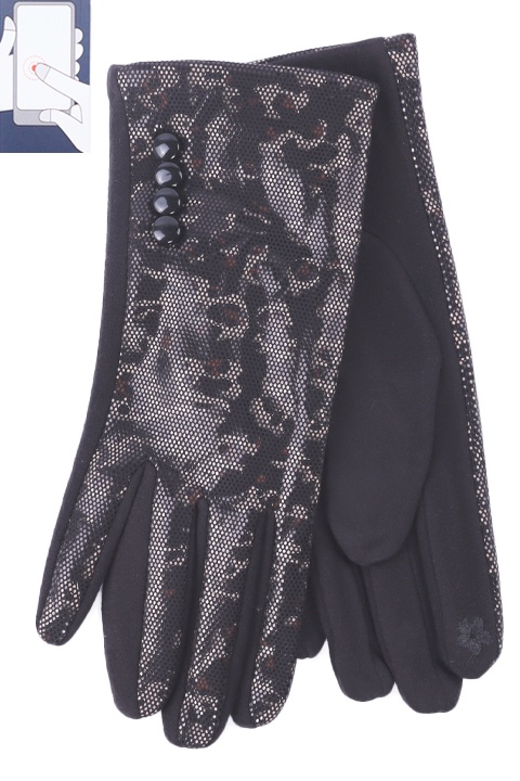 Перчатки женские сенсорные (нашивка на кончике указательного пальца), ладонь - иск.замша, верх - трикотаж под кожу на велюровой основе.