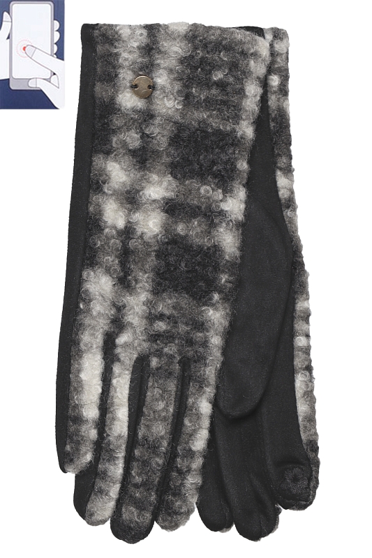 Перчатки сенсорные (нашивка на кончике указательного пальца). Комбинированные: ладонь иск.замша на велюровой основе, сверху - плотная, мягкая ткань "букле".