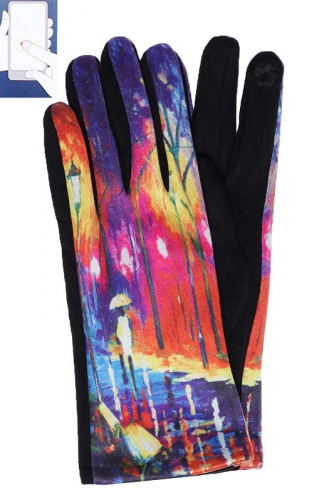 Перчатки женские из иск.замши на велюровой основе. Сенорные (нашивка на кончике указательного пальца).