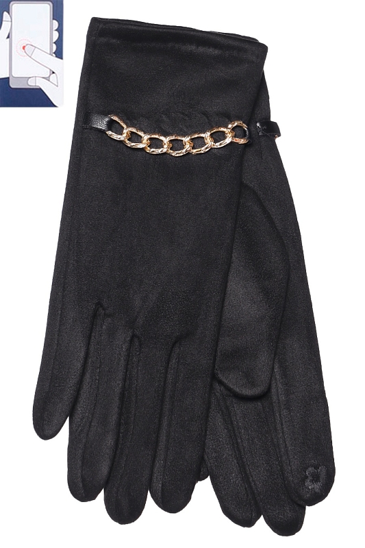 Перчатки женские из иск.замши на велюровой основе. Сенорные (нашивка на кончике указательного пальца).