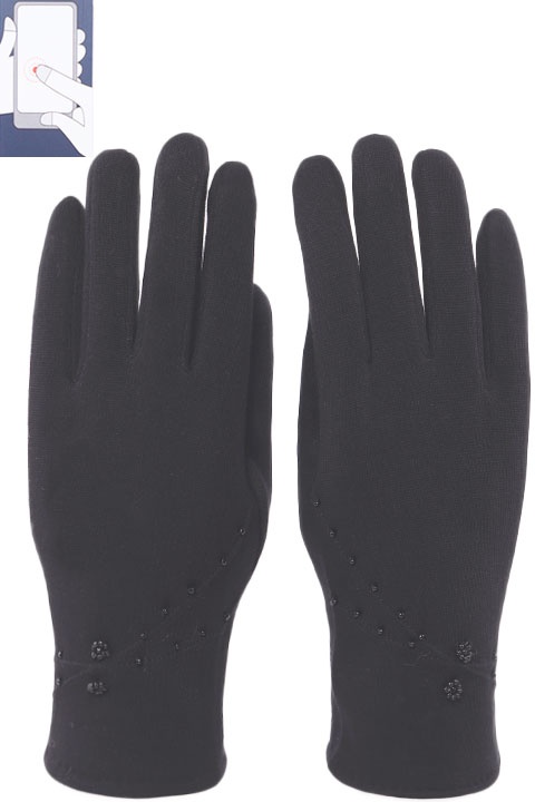Перчатки женские сенсорные (нашивка на кончике указательного пальца) утепленные, трикотаж на плюшевой основе.