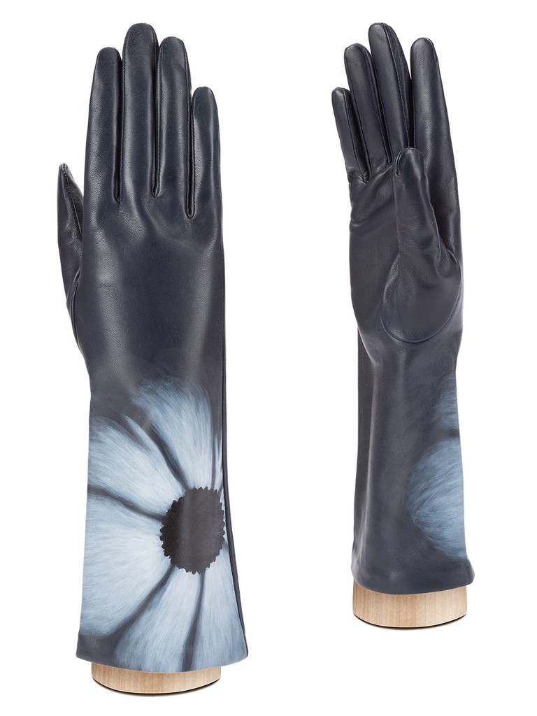 Перчатки женские торговой марки ELEGANZZA из натуральной кожи ягненка. Производство Филиппины. Подкладка: натуральный шелк. Отделка - уникальная роспись на каждой перчатке вручную. Длина манжеты от нижней точки большого пальца до края перчаток - 15 см. Длина пальцев - средняя.