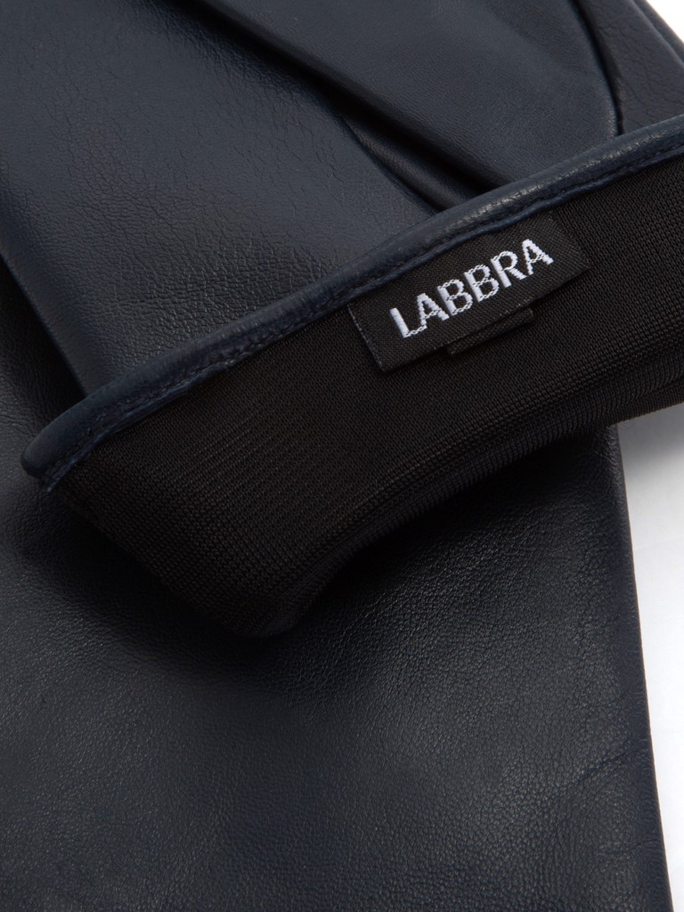 Перчатки женские торговой марки LABBRA из натуральной кожи ягненка. Производство Китай. Подкладка: шелк. Отделка - на лицевой части перчатки разрез с фирменной кнопкой. Длина манжеты от нижней точки большого пальца до края перчаток - 6.5 см. Длина пальцев - средняя.