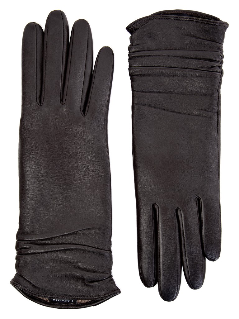 Перчатки торговой марки LABBRA из натуральной кожи ягненка. Производитель Китай. Подкладка: 70% шерсть + 30% акрил. Отделка - декоративная сборка по всей длине манжеты. Длина манжеты от нижней точки большого пальца до края перчаток - 11.5 см. Длина пальцев - средняя.