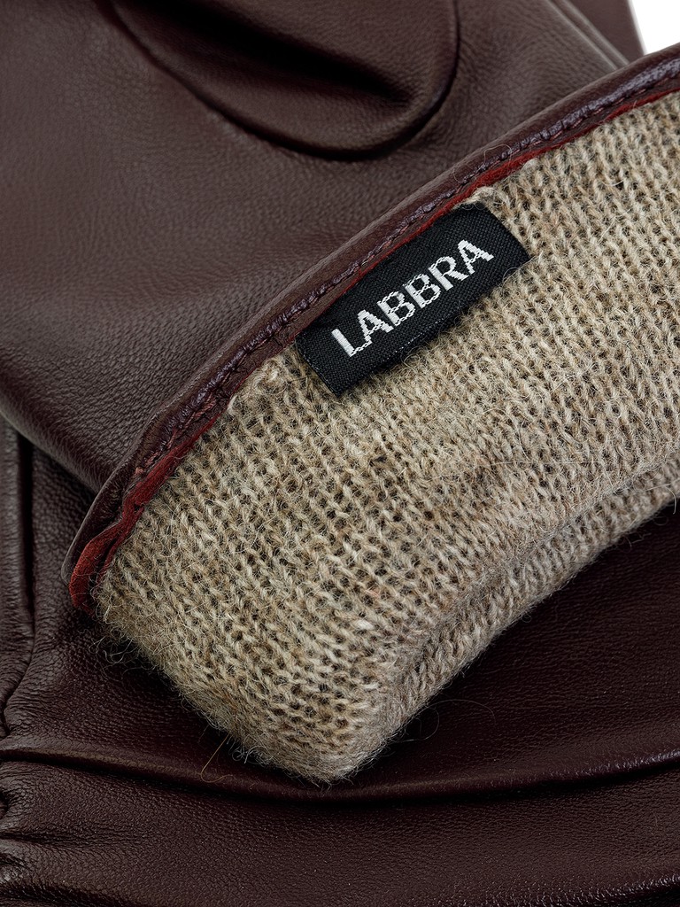 Перчатки торговой марки LABBRA из натуральной кожи ягненка. Производитель Китай. Подкладка: 70% шерсть + 30% акрил. Отделка - декоративная сборка по всей длине манжеты. Длина манжеты от нижней точки большого пальца до края перчаток - 11.5 см. Длина пальцев - средняя.