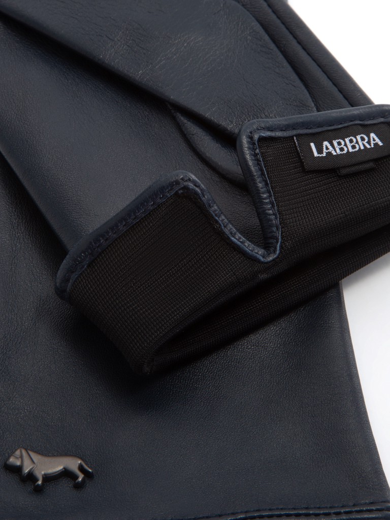 Перчатки торговой марки LABBRA из натуральной кожи ягненка. Производитель Китай. Подкладка: шелк. Отделка - машинная строчка "три луча", фирменная фурнитура в виде собачки. Длина манжеты от нижней точки большого пальца до края перчаток - 6 см. Длина пальцев - средняя.